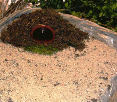 Installer le tombeau dans un coin en mettant le pot en terre, le recouvrir de terre,