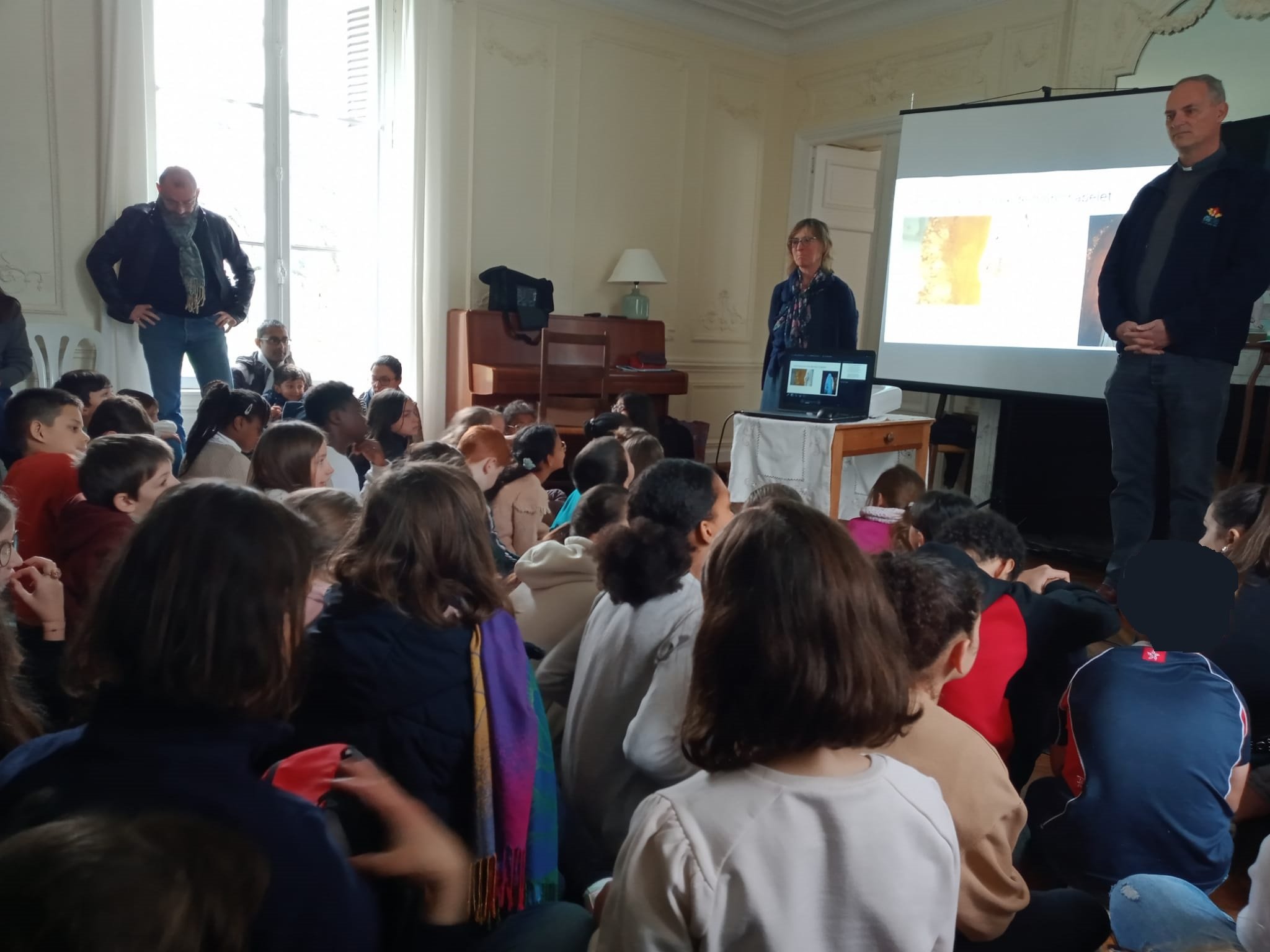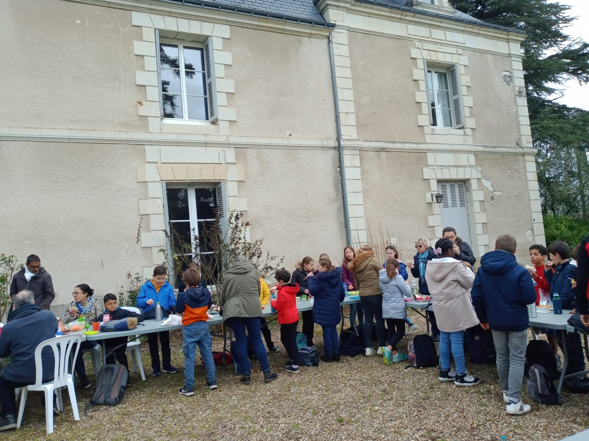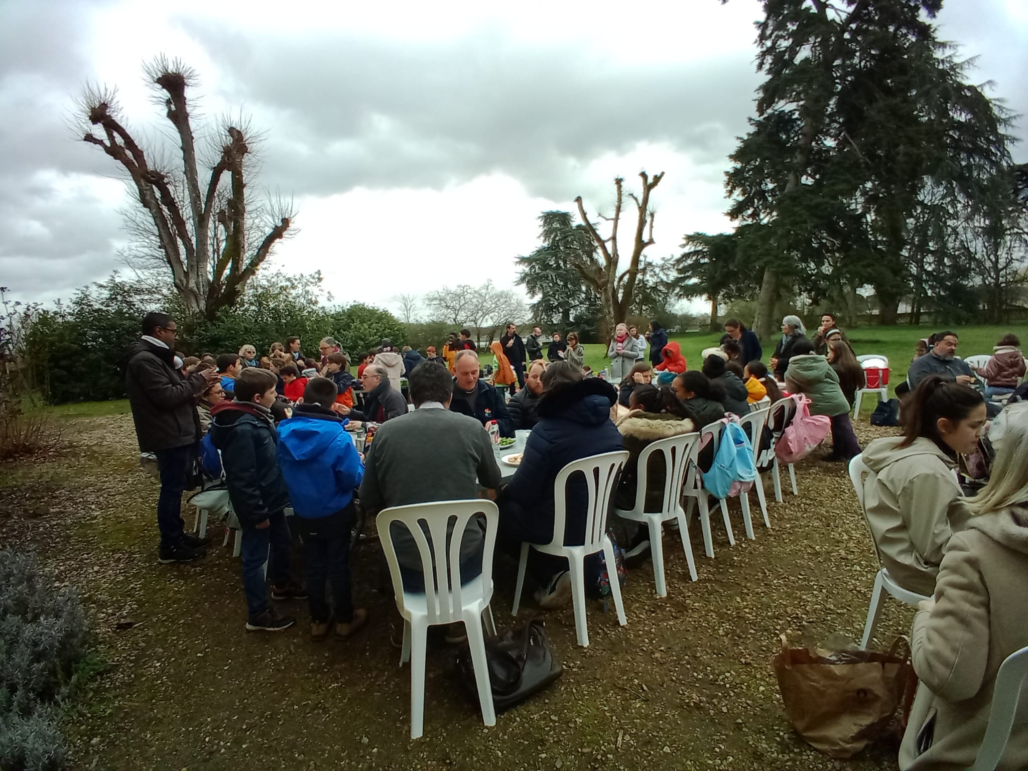 Ravis de profiter d’un temps de jeu, dans le grand parc, les enfants et les grands ont pu pique-niquer dehors avant de retourner écouter le père Fabrice Douérin leur parler de toutes les manières de prier que nous enseigne Marie (d’abord savoir se mettre en silence pour écouter, prier avec tout notre corps, prier avec la Parole de Dieu).