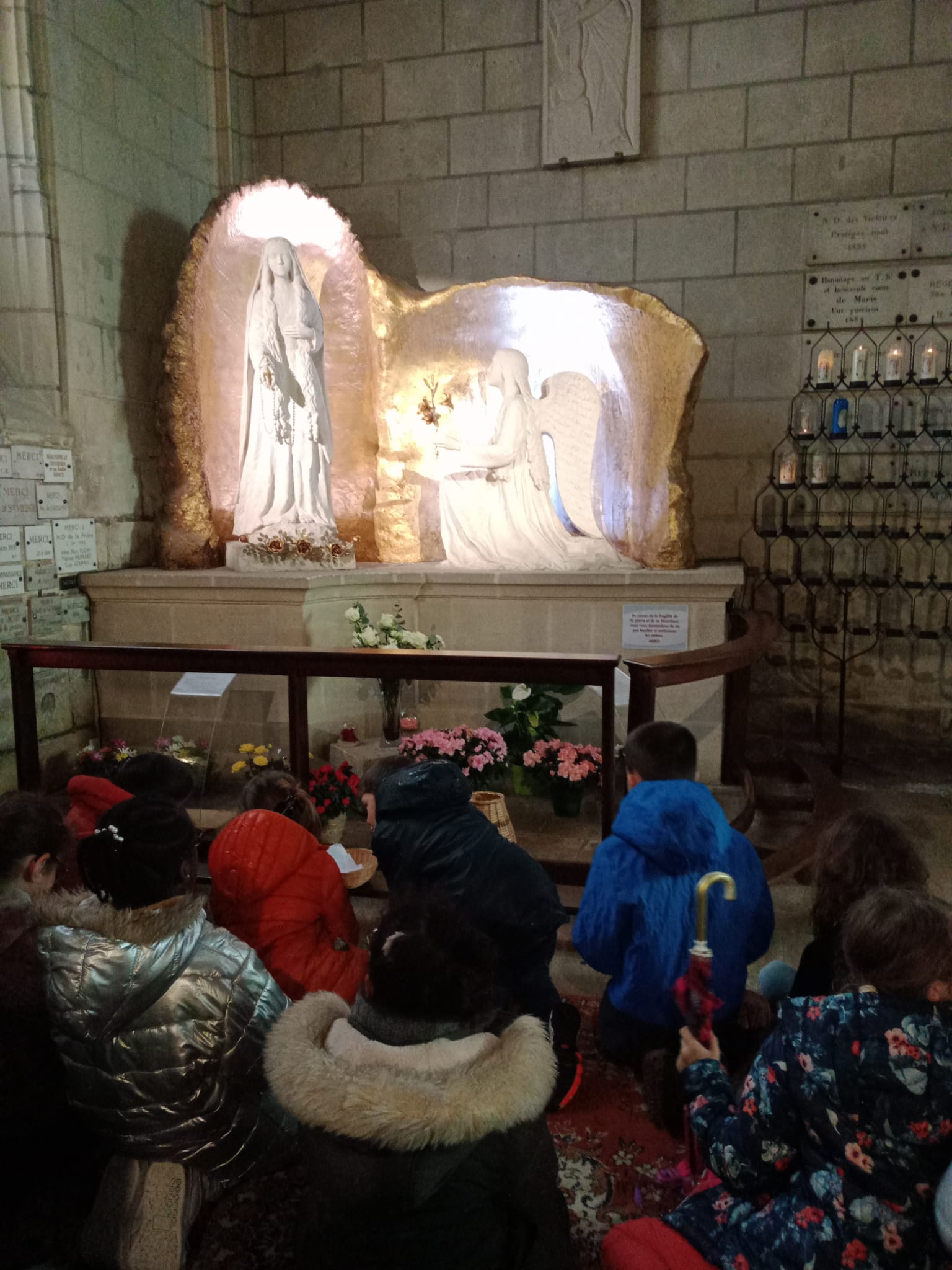 Tout le monde a ensuite rejoint l’église St Gilles, et le père Philippe a donné à chacun sa bénédiction devant la sculpture de la vierge Marie.