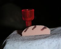 un petit cube, une petite coupe et un morceau de pain qui peut être découpé dans du carton.