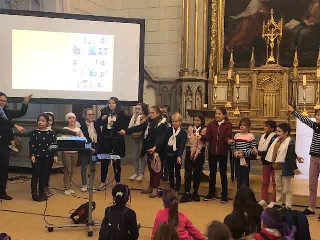Après un déjeuné bien animé dans les salles à manger du Carmel, tout le monde se retrouvait dans la chapelle Saint Martin pour chanter et répondre à un quiz.